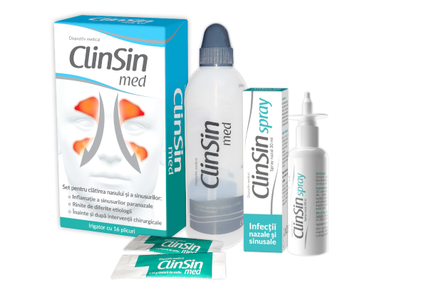 Seturile ClinSin® med și ClinSin® med JUNIOR sunt compuse dintr-un recipient de plastic și 16 plicuri cu pulbere, utilizate pentru clătirea cavității nazale și a sinusurilor paranazale, cu rol de curățare și îngrijire, precum și de prevenire a simptomelor post-operatorii la nivelul nasului și a sinusurilor paranazale.